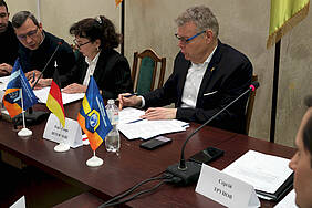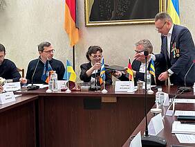 Інститут постфосильної логістики був представлений директором Карл-Георгом Штеффенсом, який особисто відвідав ХНАДУ, а також міжнародними партнерами, які долучилися до розмови онлайн. Серед них: Еліна Чернова – представниця уряду федеральної землі Північна Рейн-Вестфалія та член комітету з питань рівних можливостей та інтеграції столиці федеральної землі Дюссельдорф, а також Олексій Харечко – заступник голови Німецько-українського економічного об’єднання. Модерував зустріч та сприяв діалогу Сергій Трунов – голова українського представництва Німецько-українського економічного об’єднання.