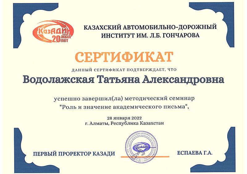 Викладачі кафедри менеджменту проф. Криворучко О.М., проф. Федотова І.В., доц. Ачкасова Л.М., доц. Бочарова Н.А., доц. Водолажська Т.О., доц. Кудрявцева О.В. прийняли активну участь в методичному семінарі "Роль і значення академічного письма", який проводився 28 січня 2022 року Казахським автомобільно-дорожнім інститутом ім. Л.Б. Гончарова в м. Алмати Республіки Казахстан. Дякуємо нашим колегам за обмін досвідом!