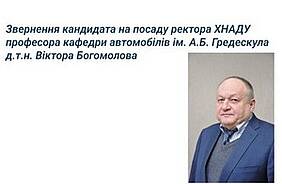 Звернення кандидата в ректори ХНАДУ професора Віктора Богомолова