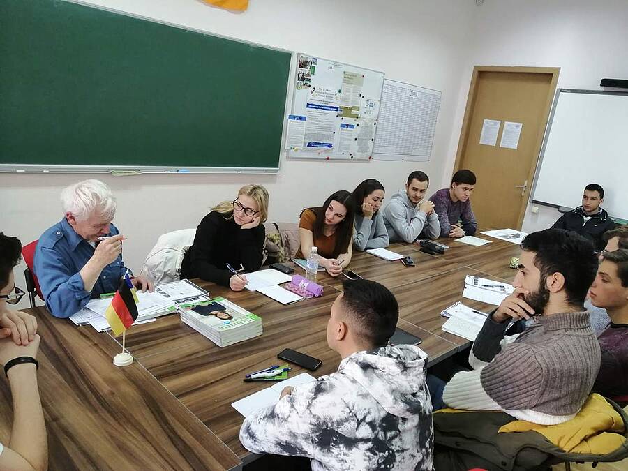 Викладач з Німеччини Армін Петер проводить заняття з німецької мови