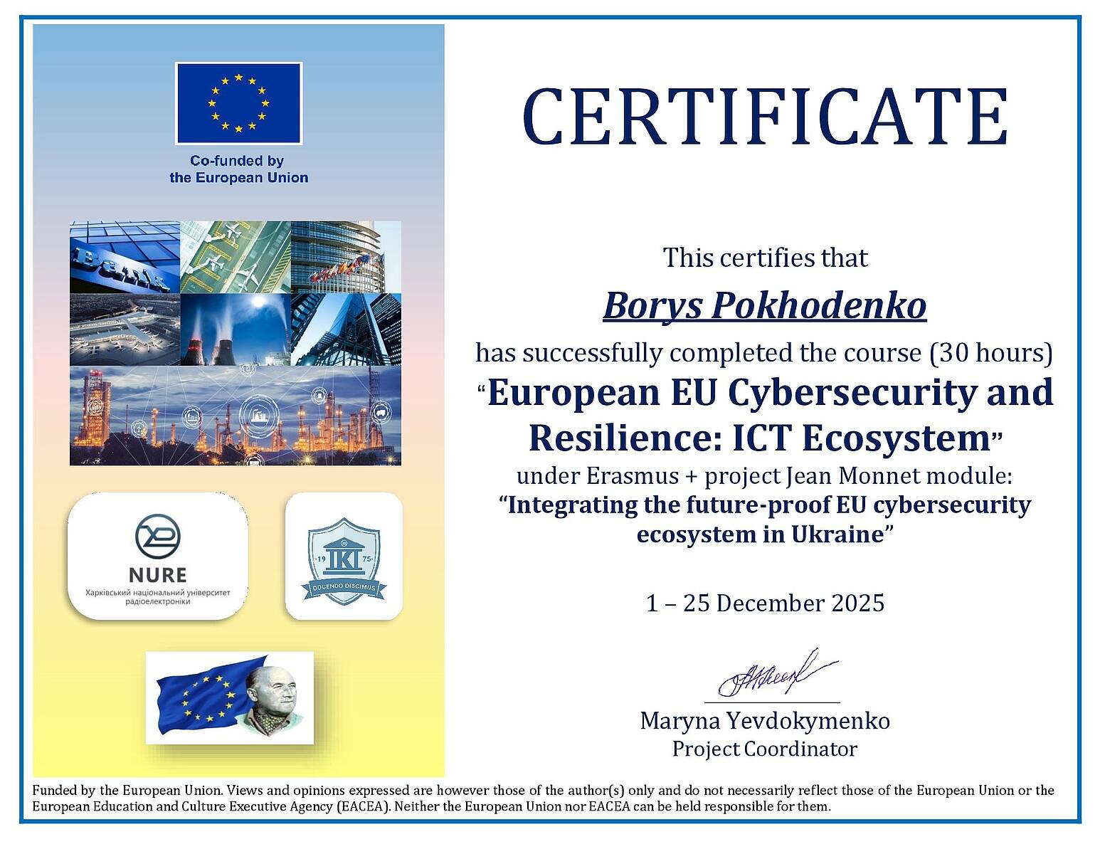 З 16 по 18 грудня 2025 року Михайло Піксасов успішно пройшов курс підвищення кваліфікації на тему «Професійний розвиток педагога в умовах освітніх трансформацій». Навчальна програма тривалістю 30 годин (1 кредит ЄКТС) була зосереджена на впровадженні...