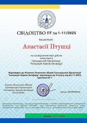 12 листопада 2025 року викладачі кафедри отримали свідоцтва про членство в Громадській Організації «Асоціація Харків–Оксфорд», що підтверджує їхню активну участь у міжнародній співпраці та розвитку освітніх ініціатив.