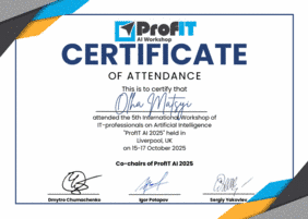 У жовтні 2025 року викладачка кафедри комп'ютерних наук та інформаційних систем (КНіІС) Ольга Маций взяла участь у 5-му Міжнародному воркшопі IT-фахівців з питань штучного інтелекту «ProfIT AI 2025», який відбувся в Ліверпулі (Велика Британія) 15–17 жовтня 2025 року.