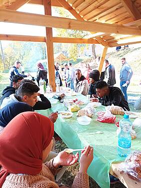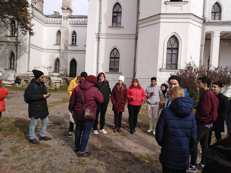 В один із теплих і сонячних днів осені - 10 жовтня 2021 року - 44 іноземні студенти з Марокко, Туркменістану, Монголії, Єгипту, Китаю, Еквадору і Нігерії разом із викладачами кафедри мовної підготовки на чолі із завідувачкою, доц. Моргуновою Н.С. і деканом ФПІГ, доц. Кудрявцевим В.М. вирушили комфортабельним автобусом у дивовижну подорож цікавими місцями Харківщини. Перша зупинка екскурсантів - палац-замок цукрового магната Кеніга у селищі Шарівка. Оповиті теплими кольорами осені, потонулі в різнокольоровому листі, старовинні будівлі садиби не могли не зачарувати іноземних відвідувачів. Як відомо, кожне дерево, кожен куточок Шарівки овіяні легендами та історіями. Тому не дивно, що іноземні студенти дуже уважно слухали екскурсовода, адже хотіли почути та дізнатись якомога більше про побачене. Атмосфера палацу та всього парку з його багатовіковими деревами справила на іноземних мандрівників сильне враження. Далі подорожуючі вирушили до розбитого у вигляді великого амфітеатру та відомого своїми унікальними акустичними властивостями цікавого багатоярусного об'єкта садово-паркової архітектури, що дістав романтичної назви "Співочі тераси". Тут на студентів-іноземців чекали не лише різноманітні рослини та дерева, мальовнича річка, затишні бесідки, майданчик для ігор, але й такий жаданий пікнік, спортивна і культурно-розважальна програми. Так, поки одні іноземні студенти грали у волейбол і футбол, часом навіть із деканом, інші - готували стіл для спільного обіду - робили бутерброди, різали овочі, розставляли посуд. Потім на всіх чекала старовинна традиційна українська страва - дуже смачний куліш, що власноруч приготував декан факультету підготовки іноземних громадян ХНАДУ доц. Кудрявцев В'ячеслав Михайлович. А після чаювання з тістечками, печивом і цукерками на студентів-іноземців чекав несподіваний сюрприз - безліч цікавих конкурсів, до проведення яких заздалегідь готувалася завідувачка кафедри мовної підготовки доц. Моргунова Надія Сергіївна. Так, іноземні студенти, які у трьох командах змагалися між собою - перетягували канат, передавали один одному м'яч, бігали у мішках, переміщувалися на паперових аркушах, робили з опалого листя "осінній шашлик" та ін., - отримали не лише величезне задоволення, але й наприкінці кожній команді було вручено солодкі призи, оскільки, як відомо, перемагає дружба. Додому ввечері іноземні громадяни поверталися втомлені, проте щасливі, сповнені незабутніх вражень, висловлюючи слова подяки за чудово проведений день, такий насичений та яскравий. На згадку про цю незабутню екскурсію залишилися сотні колоритних фотосвітлин і безліч відео. "Неодмінно поїдемо на екскурсію знову!" - вже третій день поспіль діляться враженнями іноземні студенти. А це означає, що саме так і буде!