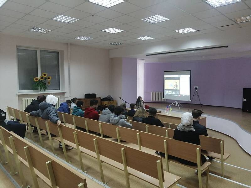 Інформаційна сесії проходила в гібридному режимі: частина учасників (біля 25 студентів) відвідали сесію наживо у конференц залі іноземного корпусу, а частина (близько 30 студентів) взяли участь он-лайн.