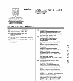 Патент на винахід № 130016; номер заявки a 2021 07706; 15.10.2025; Бюлетень № 42/2025.