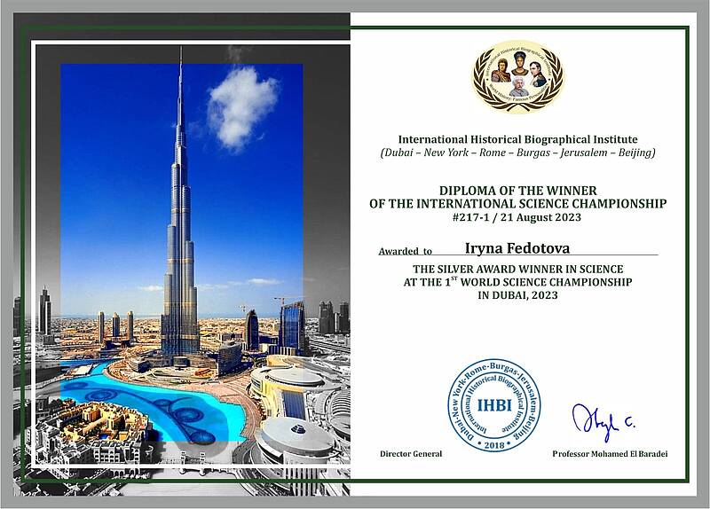 Сердечно вітаємо викладачів кафедри менеджменту к.е.н., доцента Бочарову Надію Аваківну, д.е.н., доцента Федотову Ірину Володимирівну та асистента Величко Яну Іванівну, а також студентів магістратури Гусакову Катерину та бакалавратури Резніка Ігоря зі здобуттям срібних призів та отриманням дипломів! У І Чемпіонаті Світу з Науки у Дубаї, який тривав із 7 по 21 серпня 2023 року взяли участь 1236 учасників із 69 країн світу. Роботи було подано по 38 галузях науки. Нагороди здобули 360 вчених. Серед суддів було понад 30 Нобелівських лауреатів. У загальнокомандному заліку по країнах: 1 місце – Китай, 2 місце – США, 3 місце – ОАЕ, 4 місце – Індія, 5 місце – Франція, 6 місце – Велика Британія, 7 місце – Бразилія, 8 місце – Ізраїль, 9 місце – Україна, 10 місце -Австралія. Отримання срібних призових місць - це видатне досягнення для вітчизняної науки.