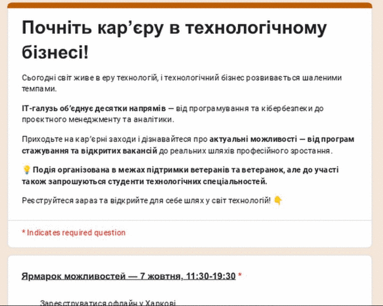 7 жовтня у Харкові відбудеться Ярмарок кар’єрних можливостей для ветеранів та ветеранок. Але двері події відкриті й для студентів технологічних спеціальностей!