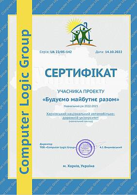 Наш університет як учасник Всеукраїнського проєкту «Будуємо майбутнє разом» отримав від постачальника програмного забезпечення ТОВ «Computer Logic Group» Ліцензійну картку (Серія: UA 22/05-143) на безкоштовне користування протягом 2022/2023 навчального року наступними кошторисними програмами: