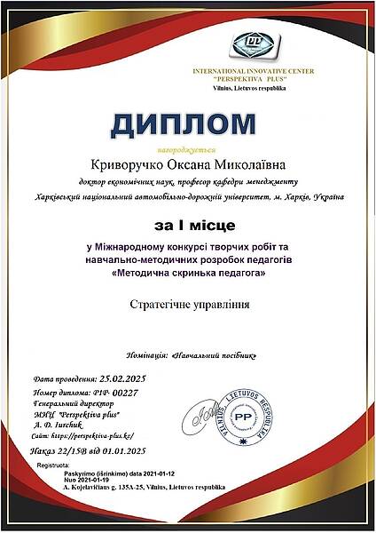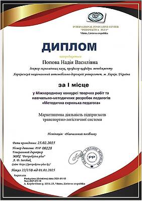 Навчальні посібники викладачів кафедри менеджменту посіли перші місця на Міжнародному конкурсі творчих робіт та навчально-методичних розробок педагогів «Методична скринька педагога», що проходив у січні-лютому 2025 року. Організатором заходу виступив Міжнародний інноваційний центр «PERSPEKTIVA PLUS» (м. Вільнюс, Литва).