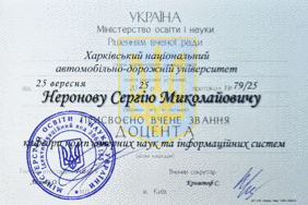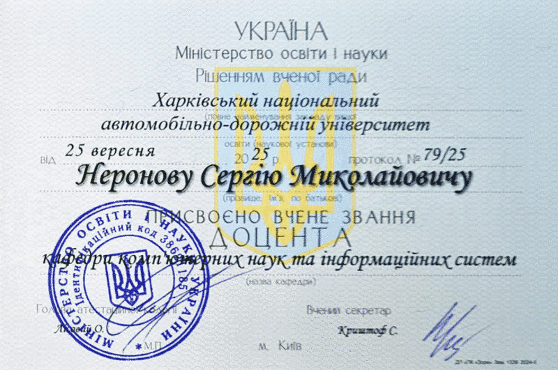 Неронов С.М. кафедри комп'ютерних наук і інформаційних систем отримав атестат доцента