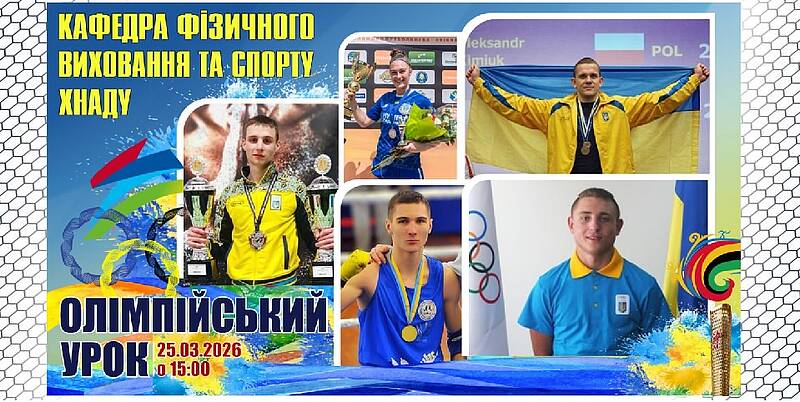 25 березня 2026 року о 15:00 у дистанційному форматі в межах проекту " Олімпійський урок" відбудеться зустріч із найкращими випускниками - спортсменами нашого університету з різних видів спорту. Захід проводиться з метою популяризації спорту та здорового способу життя серед молоді .Кафедра фізичного виховання та спорту запрошує всіх бажаючих долучитися до зустрічі.
