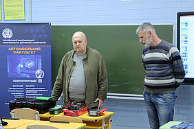 Старший викладач кафедри ІСАТ Володимир Безрідний розповів майбутнім абітурієнтам про популярну спеціальність J8 «Автомобільний транспорт», а доцент Сергій Кривошапов  про нову цікаву та інноваційну освітньо-професійну програму G11.05/J8 "Інжиніринг систем автомобільного транспорту". Не аби який інтерес у старшокласників викликало представлене доцентом Юрієм Горбіком сучасне діагностичне обладнання для обслуговування автомобілів. Слухачі отримали змогу не лише візуально, а й власними руками, познайомитись та покористуватись представленими пристроями.