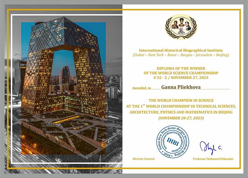 Щиро вітаємо викладачів кафедри інформатики та прикладної математики доц. Плєхову Г. А., проф. Левтерова А. І., доц. Костікову М. В. з перемогою на І Чемпіонаті Світу з Технічних Наук, Архітектури, Фізики та Математики, що відбувся у Пекіні 20-27 листопада 2023 р.! Щиро бажаємо подальших творчих перемог!