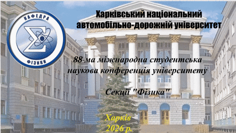 1 квітня 2026 року в ХНАДУ на кафедрі фізики відбулося засідання секції «Фізика» 88-ої міжнародної студентської наукової конференції університету. У роботу секції прийняли участь студенти та викладачі ХНАДУ. Для обговорення було представлено 10 доповідей. За результатами роботи секції визначені найбільш актуальні питання та завдання щодо вирішення існуючих проблем розробки нових ідей та практичних результатів з точки зору новітніх фізичних досліджень. Підкреслена роль сучасних фізичних досліджень для вирішення проблем в області енерго- і ресурсозбереження, зокрема для автомобілебудування, будівництва доріг, виробництва сучасних матеріалів, енергетики. Оргкомітет визначив роботу секції плідною, успішною, визначив високий рівень доповідей, обговорень і дискусій; активну участь у роботі семінару здобувачів вищої освіти особливо автомобільного і механічного факультетів.