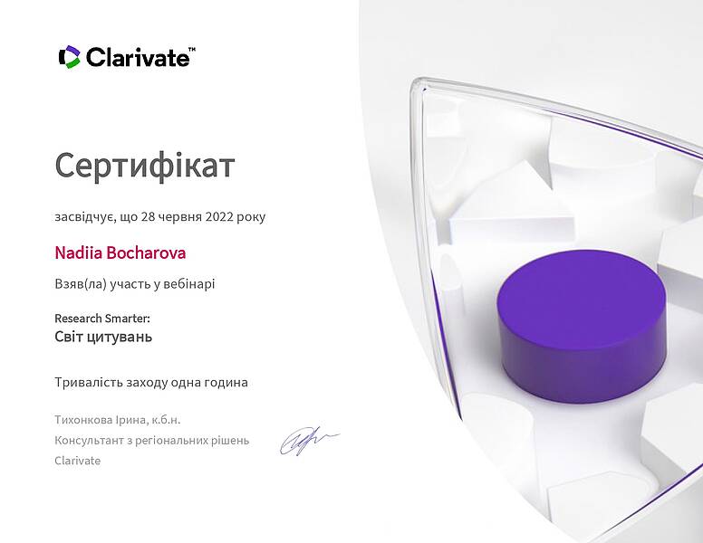 Дякуємо компанії Clarivate та особисто лектору Тихонковій Ірині за змістовний та корисний вебінар!
