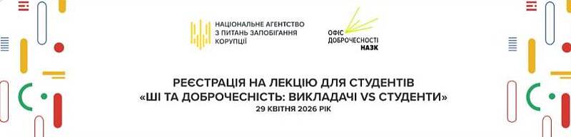 Команда Офісу доброчесності Національного агентства з питань запобігання корупції (НАЗК) запрошує Вас та студентів університету на відкриту лекцію «ШІ та доброчесність: викладачі vs(?) студенти», яка присвячена формуванню у студентів розуміння етичного та відповідального використання штучного інтелекту в освітньому процесі, а також усвідомлення меж академічної доброчесності в умовах цифрових технологій.