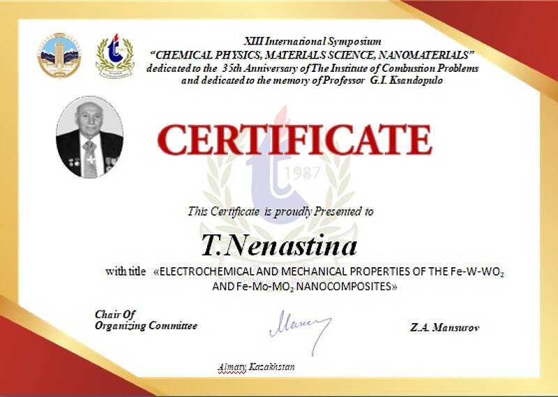 “СHEMICAL PHYSICS, MATERIALS SCIENCE, NANOMATERIALS” , що відбувся в м. Алмати, Казахстан
