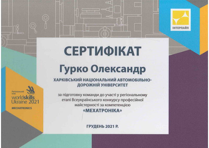 Студенти Біловол Борис (група МА-41-18) і Ярута Андрій (група Ма-31-19) зайняли II місце на регіональному етапі Всеукраїнського конкурсу WorldSkills Ukraine 2021-2022 професійної майстерності компетенція «Мехатроніка».