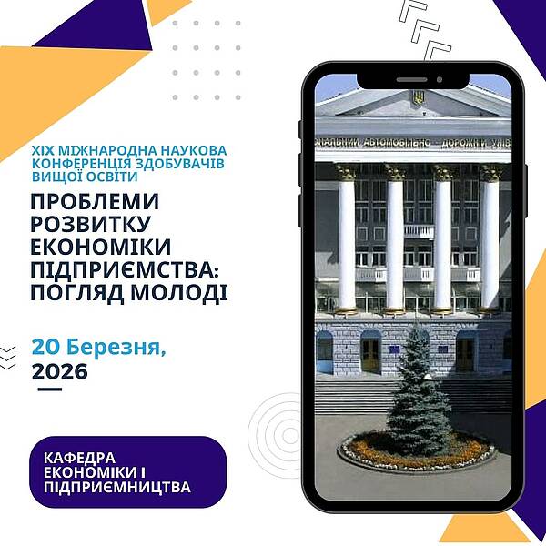 Кафедра економіки і підприємництва Харківського національного автомобільно-дорожнього університету запрошує студентів, аспірантів та молодих науковців долучитися до участі у ХІХ Міжнародній науковій конференції здобувачів вищої освіти «Проблеми розвитку економіки підприємства: погляд молоді».
