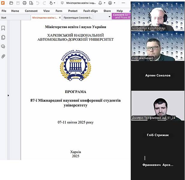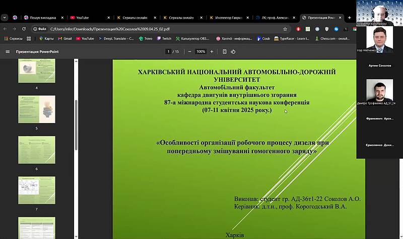 9 квітня 2025 року в форматі відеоконференції ZOOM відбулося засідання секції "Енергетичне машинобудування" 87-ої Міжнародної студентської наукової конференції студентів університету.