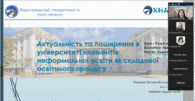 З метою інформування та популяризації неформальної освіти в університеті 11 січня 2024 року був проведений вебінар для викладачів та здобувачів сумісно Відділом акредитації, стандартизації та якості навчання та Лабораторією інноваційних технологій в освіті на тему «Актуальність та поширення в університеті елементів неформальної освіти як складової освітнього процесу», впродовж якого слухачі дізналися чим неформальна освіта вирізняється серед інших форм, які неформальна освіта надає переваги, про процедури визнання результатів навчання здобутих в її рамках.
