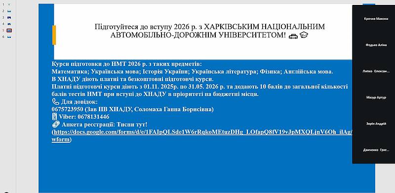 Гостям нагадали про можливість запису на підготовчі курси ХНАДУ.