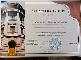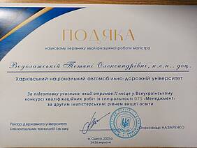 • ІІ місце (магістерський рівень, 2-й рівень вищої освіти) — Тетяна Семенова, спеціальність 073 «Менеджмент». Науковий керівник — доц. Тетяна Водолажська.