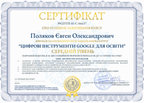 Викладачі кафедри МБЖД проф. Полярус О.В., проф. Богатов О.І., доц. Крайнюк О.В., доц. Поляков Є.О. пройшли навчання в межах онлайн-курсу “Цифрові інструменти Google для освіти”. Викладачами була успішно засвоєна освітня програма підвищення кваліфікації науково-педагогічних працівників в обсязі 30 академічних годин (базовий рівень), 15 годин (середній та поглиблений рівень). На підтвердження удосконалення професійної компетентності (цифровий компонент) всі учасники курсу отримали відповідні сертифікати.
