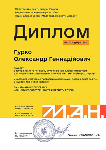 Нагороду присуджено у категорії «Навчальні програми за напрямами позашкільної освіти» (науково-технічний напрям) за навчальну програму «Основи робототехніки та Інтернету речей».