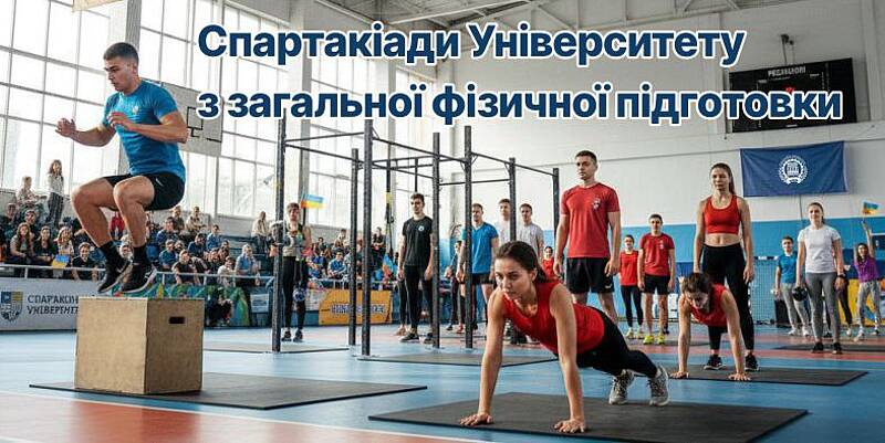 У жовтні місяці 2025 р. у дистанційному режимі проведена Спартакіада Університету з загальної фізичної підготовки, (підтягування на поперечині - юнаки, віджимання від підлоги - дівчата). У змаганнях прийняло участь 216 здобувачів вищої освіти. Суддівська бригада у складі викладачів кафедри фізичного виховання та спорту визначили наступні результати змагань: