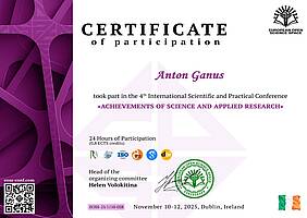 10-12 листопада 2025 року, у м. Дублін (Ірландія) пройшла  4 Міжнародна науково-практична конференція “Achievements of Science and Applied Research”.