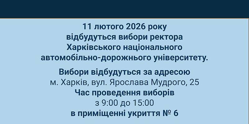 11 лютого 2026 року відбудуться вибори ректора Харківського національного автомобільно-дорожнього університету.