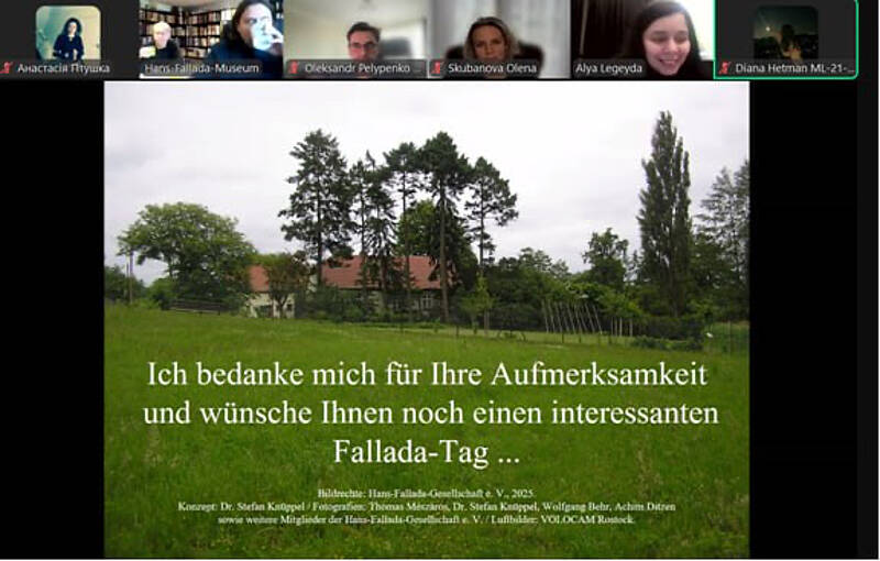 В середу 19 березня 2025 року о 16.00 студенти груп МЛ-11-24, МЛ-21-23 та МЛ-31-22 відвідали віртуальний тур по музею Ганса Фаллади (Німеччина), який провів директор музею і організатор виставок Фаллади.